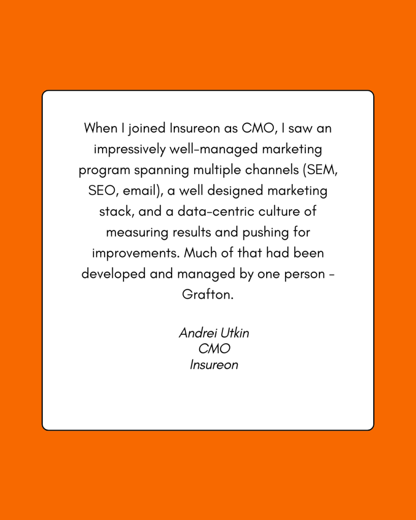 My name is Grafton Robinson. I’m currently advising early-stage startups, helping them to acquire their first customers, master their first marketing channels, develop conversion-focused, commercially viable content, and scale their marketing operations.